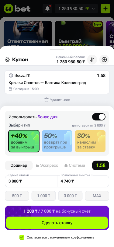 В отличие от большинства букмекеров, где бонус привязан к одному сценарию (например, только при проигрыше), в Ubet игрок сам выбирает, как использовать бонус.